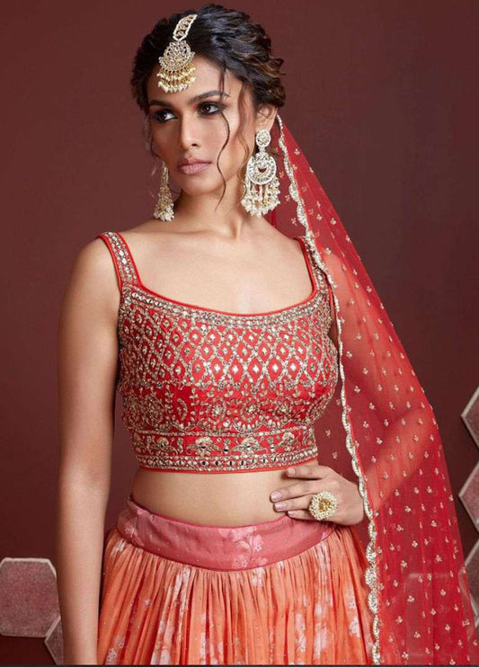 Peach Banglori Silk Embroidered Bridal Lehenga Choli