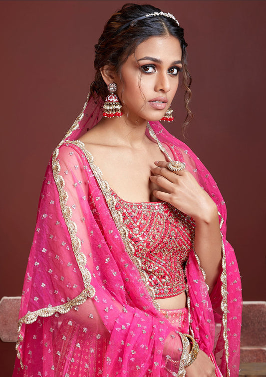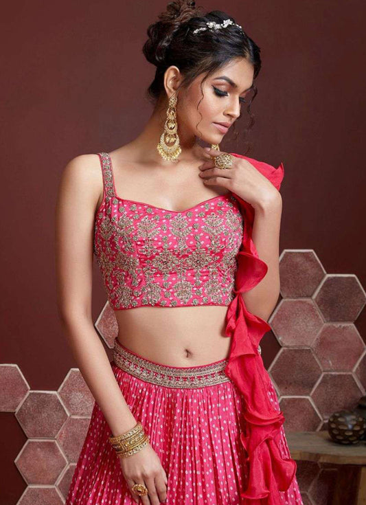 UitverkochtPink Banglori Silk Chinon Bridal Lehenga Choli